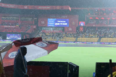 NEW DELHI: Persistent rain has cast a shadow over the much-anticipated IPL 2025 clash between Royal Challengers Bengaluru (RCB) and Kolkata Knight Riders (KKR) at the M. Chinnaswamy Stadium on Saturday. The toss, originally scheduled for the evening, has been delayed as heavy showers continued to sweep across Bengaluru.IPL officials took to the social media platform X to confirm the delay, stating: “Update: The toss has been delayed due to rain in Bengaluru. Stay tuned for further updates.”Go Beyond The Boundary with our YouTube channel. SUBSCRIBE NOW!While fans are still holding onto hope for some cricketing action tonight, the match officials have set key timings in place. Overs will begin to be reduced if rain persists beyond 8:45 PM IST. However, there remains a reasonable window of opportunity for play; the cut-off time to begin a five-over game is 10:56 PM IST. If the rain relents before that, we could still witness a high-octane, shortened match between two playoff contenders.The stakes are particularly high for both teams. RCB, currently second on the points table with 16 points, need just one more win to secure a playoff berth and potentially finish in the top two, a crucial advantage in the knockout stages.