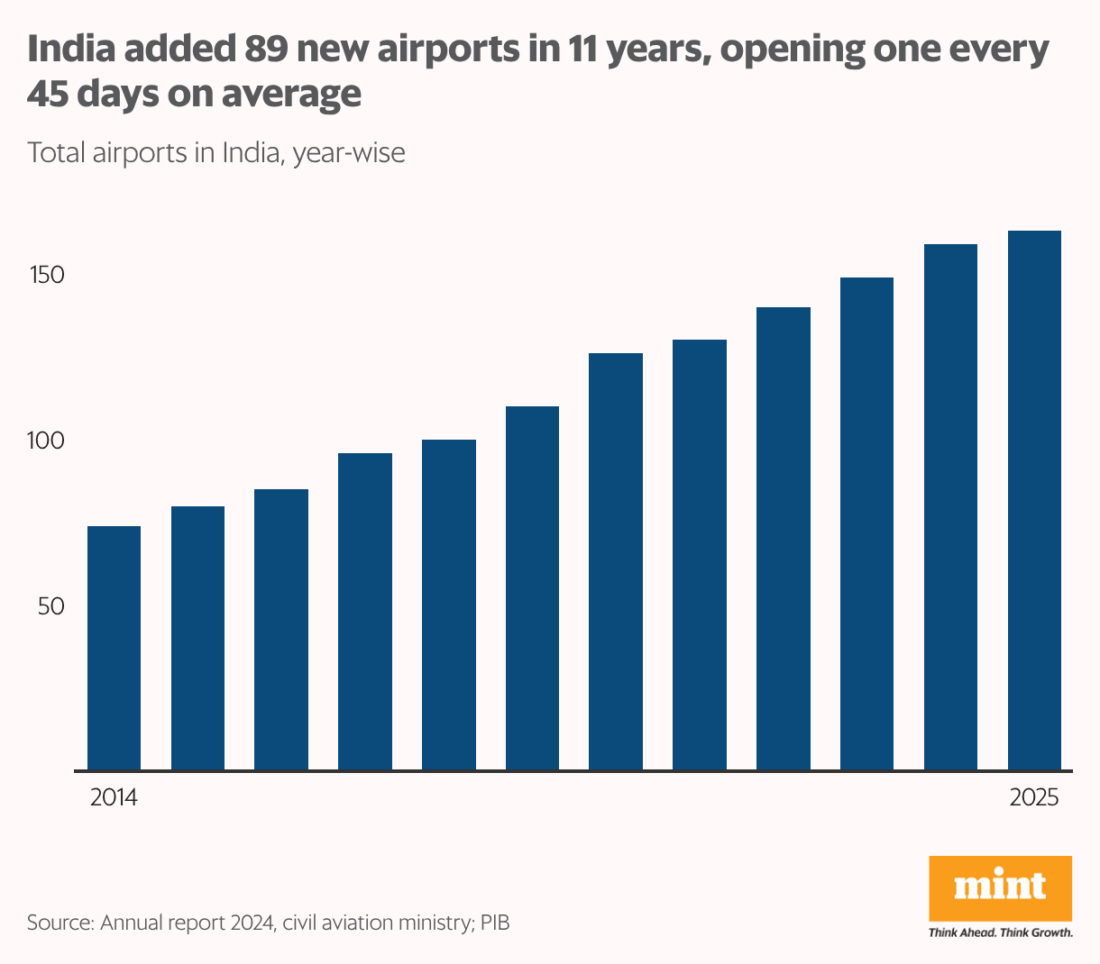 A Mint analysis of 78 airports built, upgraded or connected since 2017 shows that nearly 60% recorded fewer than 10,000 domestic passenger footfalls a month on average in 2025. Aircraft movement was also thin, with close to the same proportion seeing fewer than five domestic flights a day. By comparison, the median Indian airport handles about 24,000 passengers a month and around seven aircraft movements daily.
