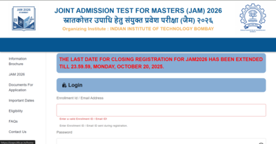 IIT JAM 2026: The Indian Institute of Technology (IIT) Bombay will close the registration process for the Joint Admission Test for Masters (IIT JAM) 2026 today, October 20, 2025, at 11:59 PM. Aspiring candidates who are yet to complete their applications can do so through the official portal — jam2026.iitb.ac.in, before the deadline.The JAM Online Application Processing System (JOAPS) will remain active until midnight, providing one last opportunity for candidates to register. Applicants are required to provide their name, valid email ID, active mobile number, and a password to generate their Enrolment ID and OTP, which will be sent to the registered contact details.The application fee for female, SC, ST, and PwD candidates is ₹1,000 for one test paper and ₹1,350 for two test papers. For all other categories, the fee is ₹2,000 for one paper and ₹2,700 for two papers.