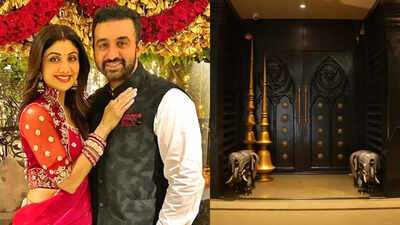 Shilpa Shetty and her husband, businessman, actor Raj Kundra, live in a stunning sea-facing home in Mumbai, aptly named Kinara. Spread across two floors and reportedly worth close to ₹100 crore, the house is every bit as glamorous as you’d expect. Farah Khan recently gave fans a peek inside through her YouTube vlog and the interiors are as eye-catching as the Arabian Sea views outside.The first thing that stands out is the main door. It’s black with intricate lotus carvings in gold, and the porch outside has warm wooden flooring and a wall of mirrors. Sitting on either side of the entrance are two silver elephant statues, a symbol of protection in feng shui.As one steps inside, there’s a huge hall which is decorated with antique mirrors, wooden accents, chandeliers, and false-ceiling LED lights set the tone. Paintings line the walls, giving the space a touch of personality.The first floor is divided into two very different living spaces. One is a formal lounge with plush designer furniture, meant for entertaining. The other is far cosier, an orange-toned family room with a gold-accent wall. A life-size wooden horse sits in one corner as a décor piece, while tall glass windows flood the space with natural light.There’s also a sleek little bar area for hosting friends, and of course, a massive gym. Fully stocked with treadmills, strength machines, and enough room for cardio, it’s where Shilpa and Raj stick to their daily fitness routines. Shilpa often shares snippets from her workouts here on social media.Connecting the two floors is a private lift lined with green leather walls, a quirky, luxe detail that sets the mood. The second level feels completely different from the first, almost like stepping into a palace. Ornate rugs, rich furnishings, and decorative walls create a regal vibe. The showstopper here is an indoor fountain set into a glass floor right at the entrance. There’s also a spacious living area with crisp white sofas, perfect for relaxing.The kitchen is striking too, done up in a bold neon green and white palette. And outside, the family grows their own vegetables in a kitchen garden. Shilpa often shares clips of herself plucking brinjals and green chillies, fresh ingredients that go straight from the garden to their meals.