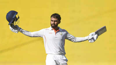 Nagpur:Atharva Taide had barely taken guard on Wednesday morning when the first murmur of dismissal rang out. At 9.29am, Akash Deep’s opening delivery – a length ball that straightened just enough – kissed past the edge and pegged back his off stump. Rest of India (ROI) had got what seemed like a dream start, until the umpire’s outstretched arm signalled a no-ball.Eight overs later, another close shave. This time the left-hander was caught on the crease to a fuller delivery, the caught-behind appeal rejected and Rest of India skipper Rajat Patidar choosing against a review. Replays showed an inside edge. Another edge from the left-hander almost carried to the first slip, but replays showed the ball being grassed before it was collected. Taide had had three lives before the clock had struck 11. In cricket, such generosity rarely goes unpunished. By stumps, Taide had turned his charmed morning into a day of substance, walking off unbeaten on 118, his grit having steered Vidarbha to 280 for five on the opening day of Irani Cup against RoI at VCA, Jamtha.For Vidarbha, Taide’s innings was intertwined with Yash Rathod’s 91 – a fourth-wicket partnership of 184 runs that transformed 80 for three into something resembling control. Their stand, full of balance and clarity, ensured Vidarbha ended the day with more than just a fighting chance. For the major part of the day, Taide’s poise stood in contrast to Rathod’s flourishes, but together they neutralised Rest of India’s momentum after Vidarbha won the toss and decided to bat.The morning, however, had belonged to Rajasthan’s left-arm spinner Manav Suthar. Fresh from a match-winning eight-for against Australia ‘A’, he struck twice in the same over to give ROI a grip. Dhruv Shorey was undone by one that spun past his bat, and in-form Danish Malewar fell moments later, feathering an edge to Ishan Kishan. With Shorey and Malewar departing in the 23rd over, Vidarbha were wobbling.But Rathod, touted as Vidarbha’s run machine, walked in with a sense of calmness. He had piled 374 runs in Duleep Trophy only weeks earlier, and picked up where he left off. Rathod’s strokes were fluent and unhurried – the cover drives stood out, each one timed to perfection. Six boundaries and a soaring six decorated his innings, the latter struck off Suthar in the 74th over.The flourish, however, proved his undoing. Eager to race to three figures before the new ball, he advanced again to the very next delivery, only to miscue into the waiting hands of Gurnoor Brar at mid-on. Rathod walked back in frustration, knowing his dismissal had cracked open a door for RoI.That door was pushed open further when Akshay Wadkar, Vidarbha’s skipper, fell cheaply to Akash. The seamer showed discipline and rhythm throughout the day. His dismissal of Wadkar, a faint edge carrying through to Kishan in the dying overs, capped a day where he had already prised out Aman Mokhade early.Even when the wickets tumbled, Taide did not flinch, shepherding the lower order alongside nightwatchman Yash Thakur till stumps.Vidarbha’s 280 for five may not yet guarantee supremacy, but it carries the stamp of their resilience. Taide will be the key again on Thursday morning.For RoI, Suthar’s 3 for 64 was the standout return, his ability to strike in clusters keeping the visitors invested. Akash Deep’s 2 for 35 framed the day neatly: one wicket at dawn, another at dusk.Brief scores: Vidarbha 280/5 (Atharva Taide 118*, Yash Rathod 91; Manav Suthar 3/64, Akash Deep 2/35) vs Rest of India.
