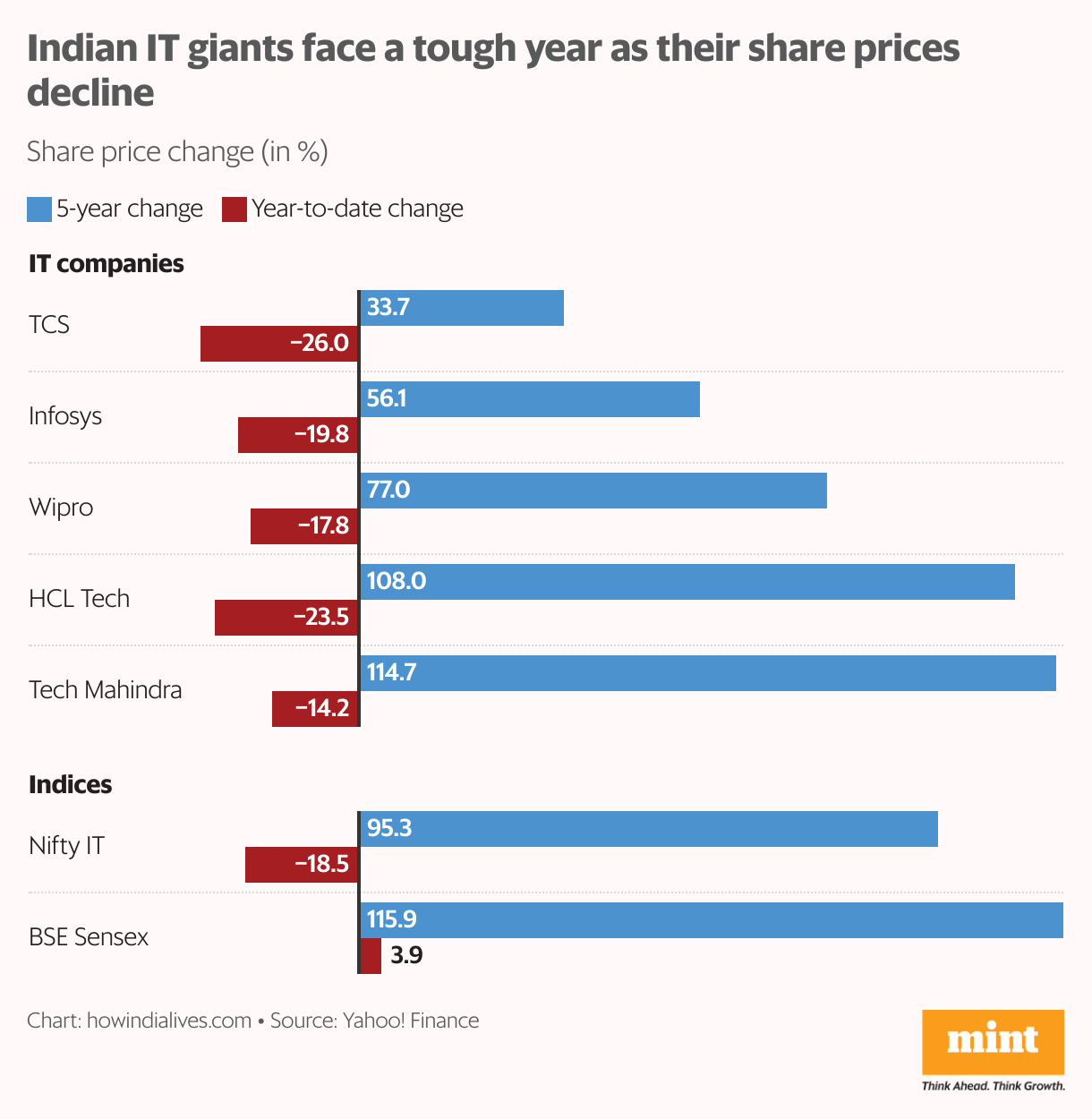 Still, the sector hasn’t resolved the structural challenges that have built up over the past few years. Investor confidence in IT stocks has eroded significantly from a year ago. While major companies have delivered strong returns over five years, their stock prices have declined over the past year—falling further in 2025 and trailing the BSE Sensex’s modest 3% year-to-date gain.