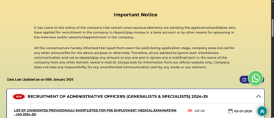 NIACL AO final result 2025: The New India Assurance Company Limited (NIACL) has officially released the final result for the Administrative Officer (AO) recruitment 2024-25. Candidates who appeared for the NIACL AO selection process can now check whether they have been shortlisted by downloading the official PDF result list from the company’s website.According to the official notice, the PDF contains the list of candidates who have been provisionally shortlisted for the Pre-Employment Medical Examination. This means these candidates have successfully cleared all stages of the recruitment process conducted so far and are now moving towards the final appointment stage The result has been released in PDF format, and the list mentions the roll numbers of shortlisted candidates. No individual scorecards or marks have been published along with this notice. Candidates are advised to carefully check their roll number in the PDF to confirm their selection status.It is important to note that the selection mentioned in the result is provisional in nature. Final appointment will be subject to candidates being declared medically fit during the Pre-Employment Medical Examination and fulfilling all eligibility and document requirements as prescribed by NIACL.