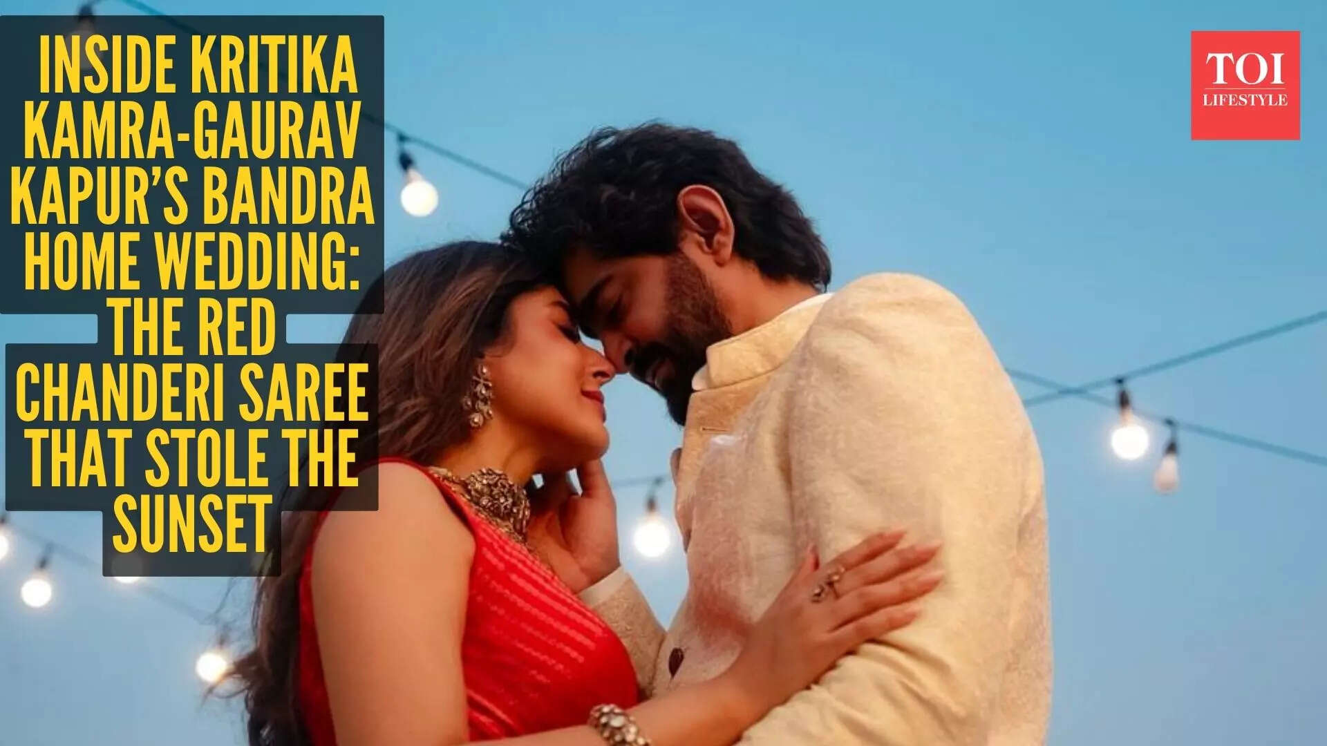 If you’re looking for ten kilos of embroidery or a viral designer lehenga, you won’t find it here. Instead, Kritika chose something far more interesting: a classic red Chanderi saree. It wasn’t just a style choice; it was a personal one. Gifted by her mother and woven specifically for her, the saree came from Cinnabar – Kritika’s own initiative that supports women artisans and keeps the traditional dyeing arts of Chanderi alive.