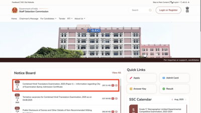 The Staff Selection Commission (SSC) has released the city intimation slip for the Combined Hindi Translator (CHT) 2025 examination. Candidates who applied for the Junior Hindi Translator, Junior Translator, and Senior Hindi Translator posts can now check their allotted exam city and shift details by logging into the official SSC website — ssc.gov.in. The examination is scheduled to be held on August 12, 2025, to fill 437 vacancies across various government departments. While the city slip helps candidates plan their travel in advance, it is not a substitute for the admit card. The official admit cards are expected to be released region-wise around the second week of August. Candidates must regularly check the SSC portal for further updates.