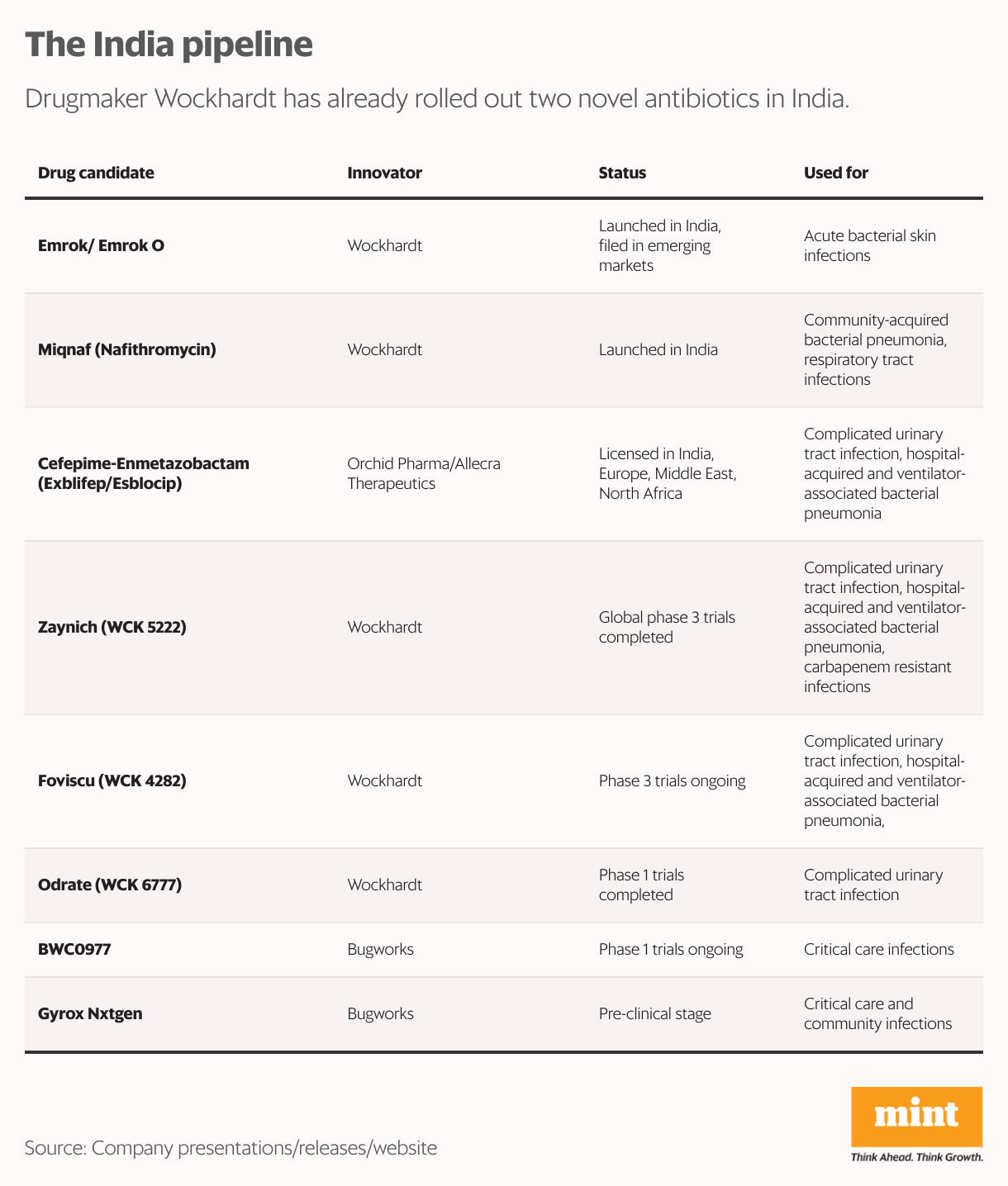 - These companies include Wockhardt, Orchid Pharma and Bugworks.