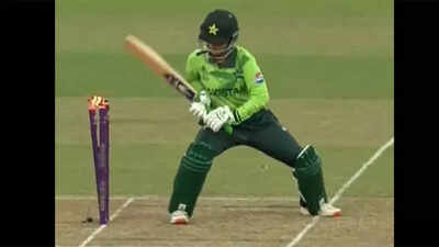 NEW DELHI: Pakistan batter Nashra Sandhu became just the second player in Women’s World Cup history to be dismissed hit wicket, in a bizarre turn of events during their opening match against Bangladesh on Thursday. The first instance occurred 52 years ago when Lynette Smith, playing for International XI Women, fell victim to the unusual mode of dismissal.Go Beyond The Boundary with our YouTube channel. SUBSCRIBE NOW!Sandhu managed just 1 run before her unusual exit off the bowling of Shorna Akter in the 35th over, with video clips of the incident quickly going viral across social media. WATCH: The rare hit-wicket dismissal of Nashra SandhuThe dismissal was part of a disciplined bowling display by Bangladesh, led by young pacer Marufa Akter and veteran spinner Nahida Akter, which restricted Pakistan to a below-par 129 all out in 38.3 overs on a docile batting track at the ICC Women’s World Cup.Bangladesh’s 20-year-old pacer Marufa Akter provided the early jolt, dismissing opener Omaima Sohail and experienced batter Sidra Amin for first-ball ducks, leaving Pakistan reeling at 2/2. Nahida Akter, with her slow left-arm spin, piled on the pressure by removing Muneeba Ali (17) and Rameen Shamim (23) just after the powerplay, effectively stifling Pakistan’s hopes of building partnerships.