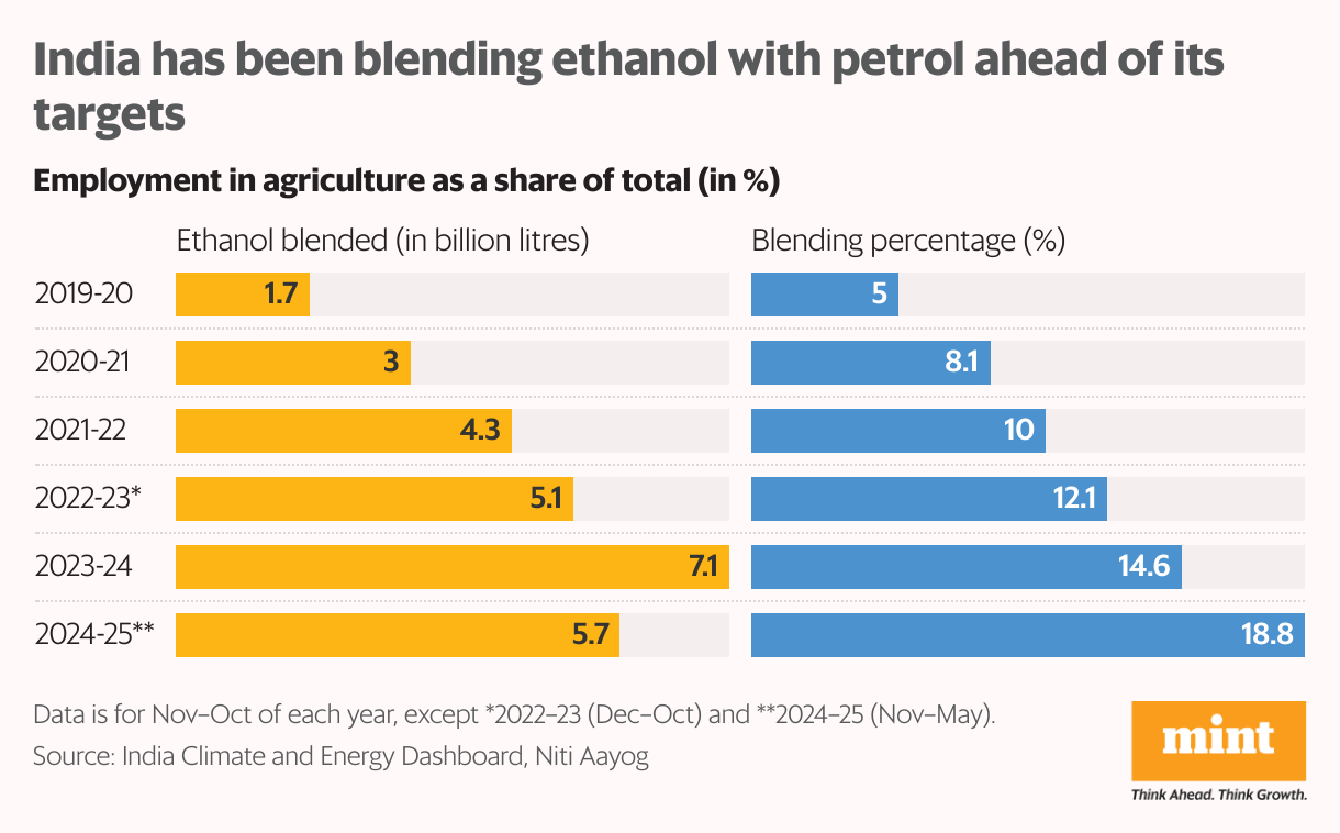 India achieved its target of blending up to 20% ethanol into petrol in March 2025—five years ahead of the 2030 deadline. Now, the government has grown more ambitious: It wants to blend more ethanol into petrol.