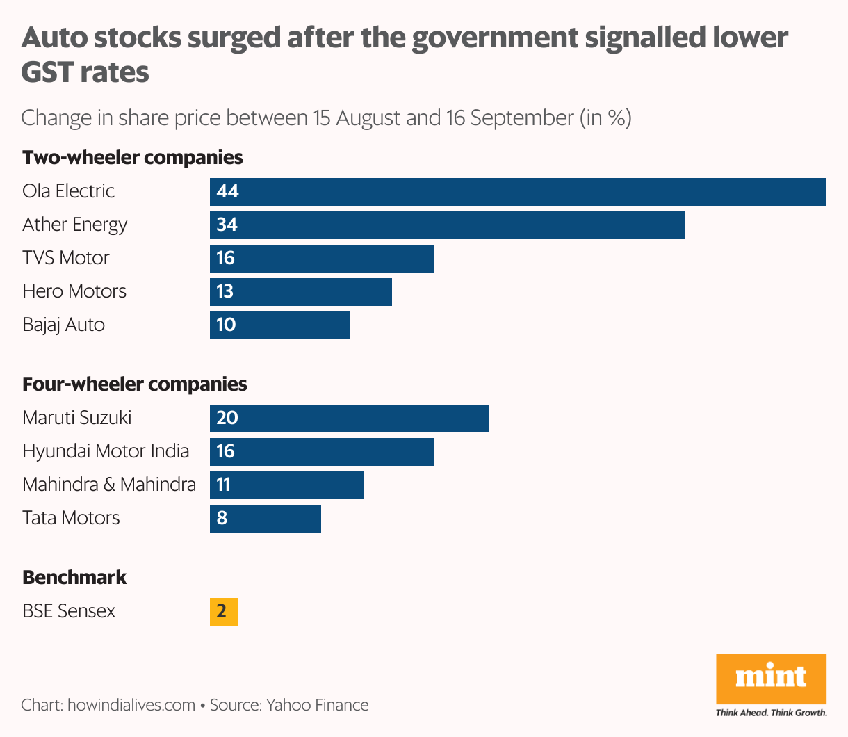 Automobile stocks have been on a tear since the Prime Minister’s announcement on Independence Day that the government was planning to reduce the rate at which goods were taxed in India. Cars and two-wheelers are among the most prominent and high-value items of discretionary consumption.